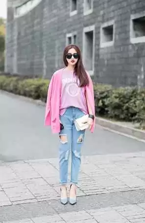 第二条万金油是蓝色牛仔裤。这可是经得起时间考验的搭配,牛仔蓝的那种随性劲儿,正好能中和粉色可能带来的“过甜”感-3。浅粉衬衫配浅蓝牛仔裤,清新减龄;饱和度稍高的粉衬衫配复古蓝或深蓝牛仔裤,则更有态度。记得把衬衫下摆塞一点进裤腰,露出腰线,比例会更好看。我周末最爱这么穿,踩双小白鞋,舒服又好看,感觉自己还是十八岁-8。