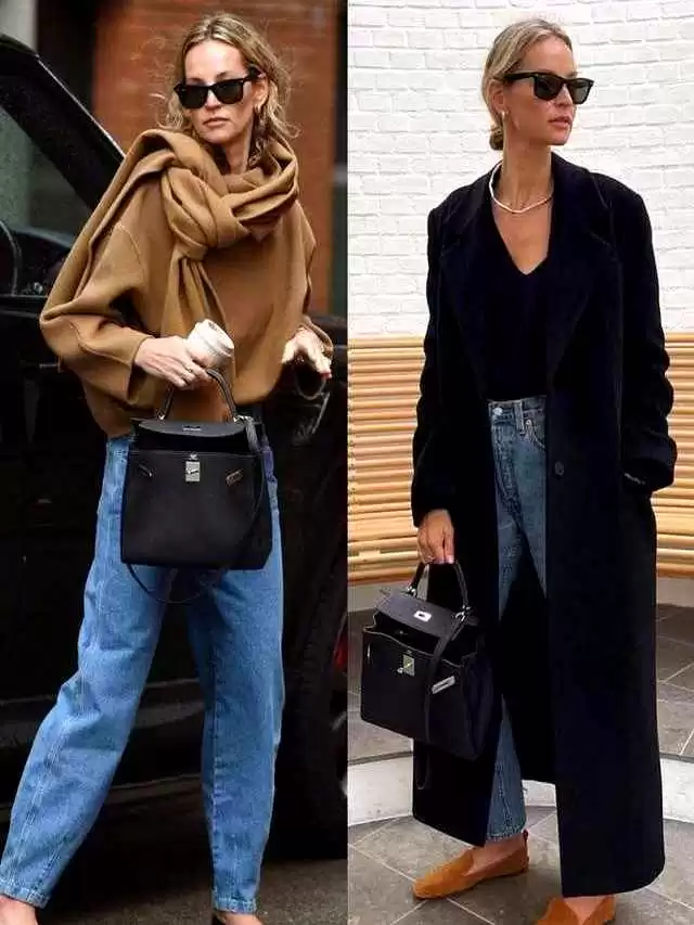 包鞋同色:棕色包配棕色鞋,黑色包配黑色鞋,简洁又高级。
