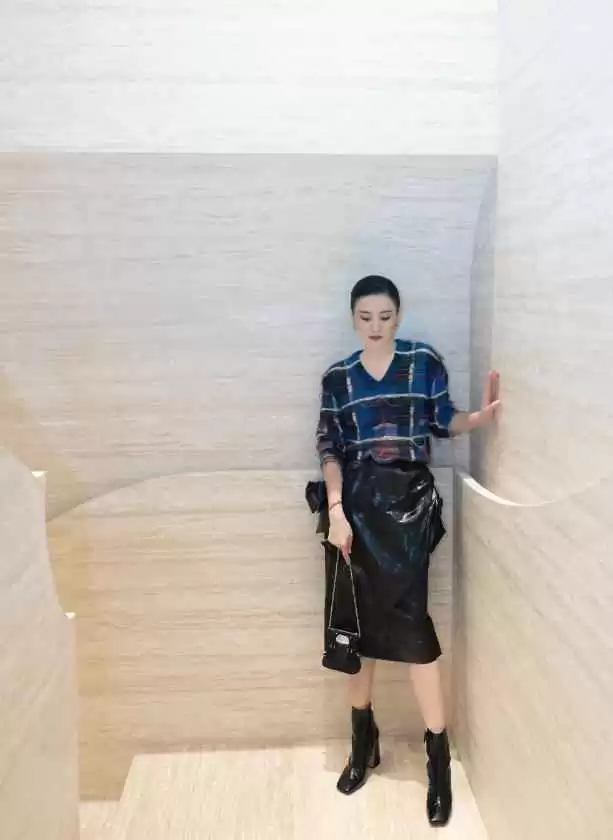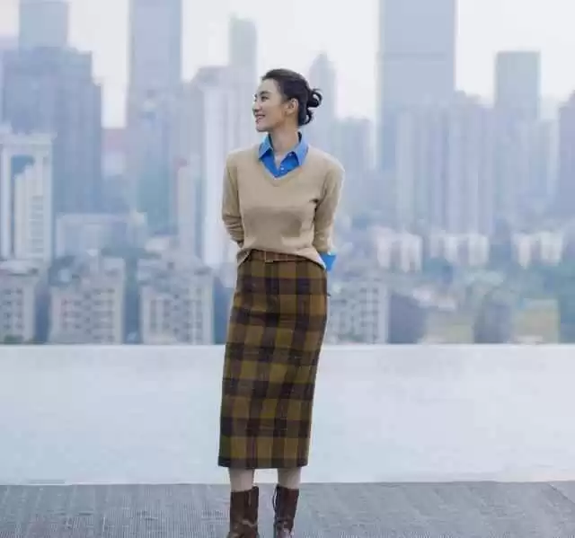 第一步:材质玩对比。用硬朗配柔软,比如皮裙搭毛衣,金属裙配针织靴,立马摆脱普通。