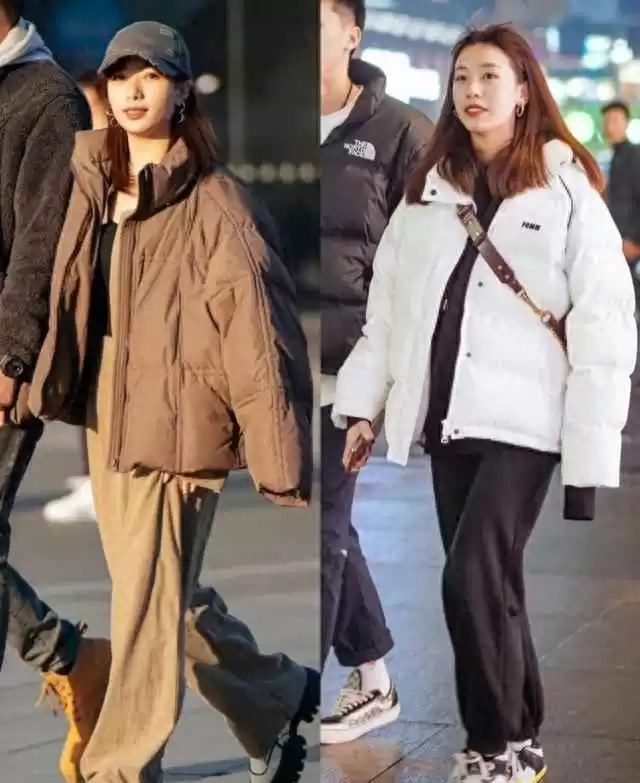 - 色彩:浅色羽绒服配深色阔腿裤更有层次;全白系(白羽绒加米白阔腿)高级,但鞋包同色系避免杂乱。