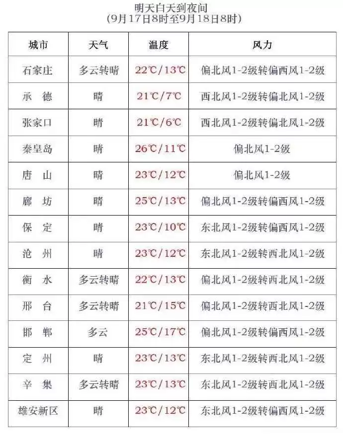 明天夜间到18日,保定西部、石家庄、邢台、邯郸晴转多云,其他地区晴间多云。
