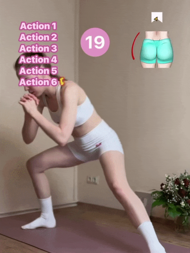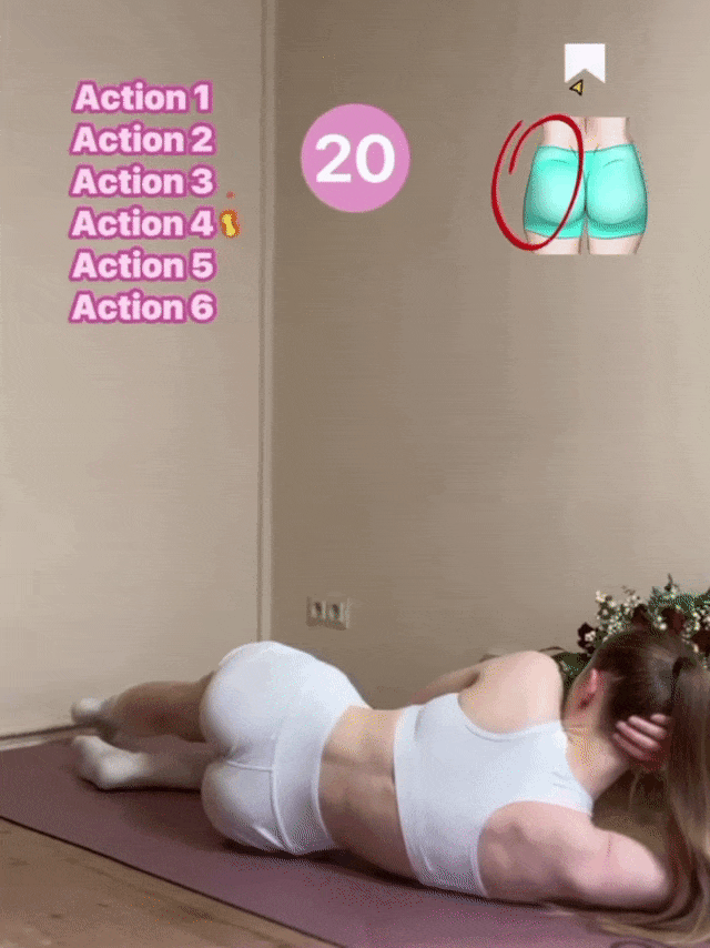 关键点:全程收紧腹部核心,用臀部和腹部发力,你会感觉这两处肌肉特别酸爽哦!