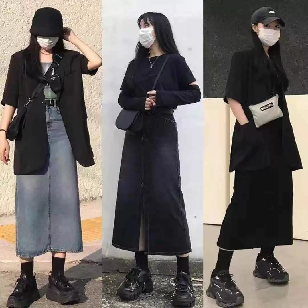 小个子女生选对酷帅风,气场也能很强。牛仔铅笔裙适合小个子,突出下半身线条,视觉上显高。配老爹鞋,显瘦又时尚,找到合适款式效果更好。