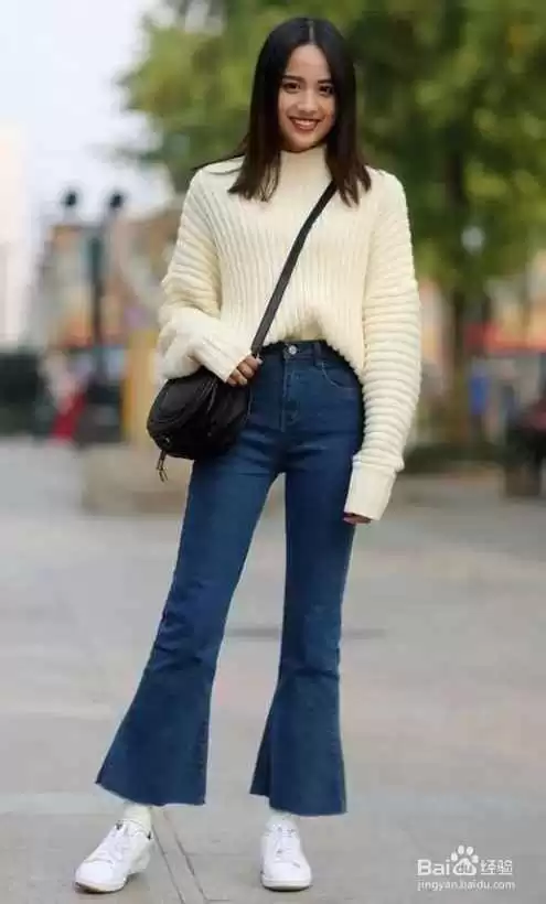知道了喇叭裤的好,接下来就是关键:喇叭裤配什么上衣才能扬长避短?这里头的学问可大了,得看人下菜碟。