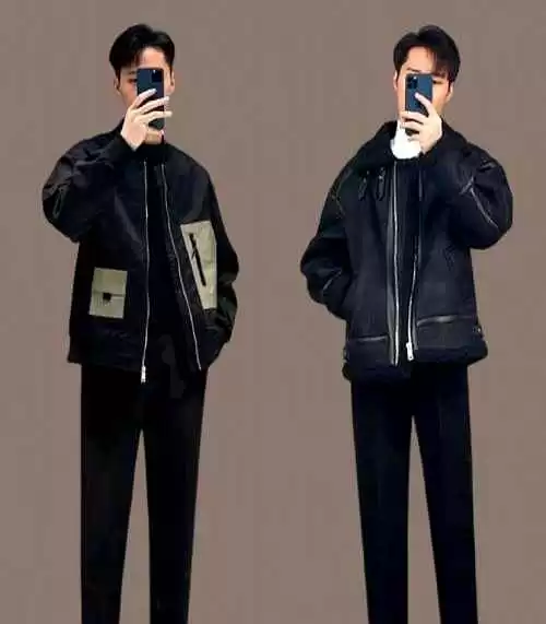 偏瘦男生秋冬可以穿叠搭,比如内搭毛衣外加外套,裤子选宽松款避免显瘦,颜色上深色系更显壮实。