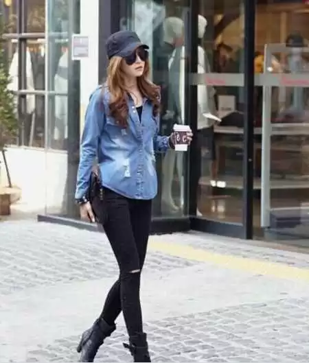 善用配饰:一条丝巾系在脖间或包柄上,一条复古的金属腰带,甚至只是一对夸张的耳环,都能瞬间点亮牛仔衬衫的沉闷感-1。