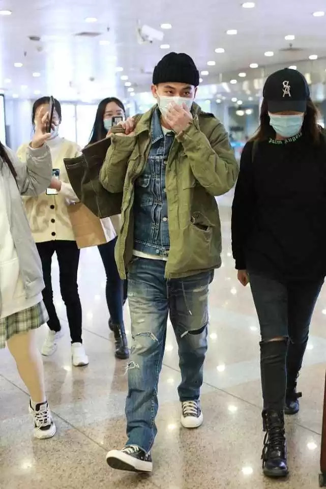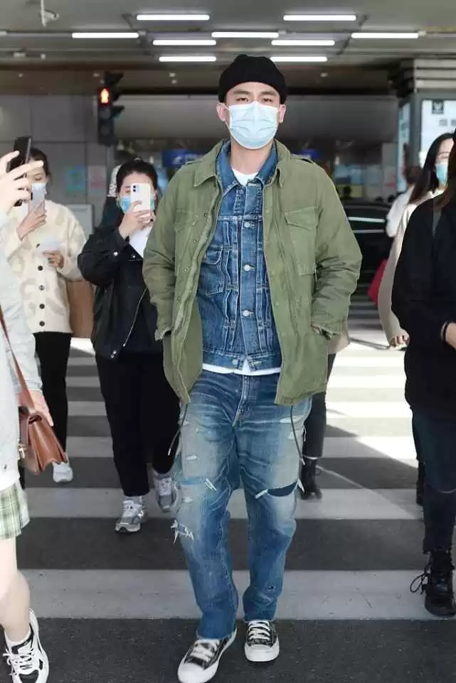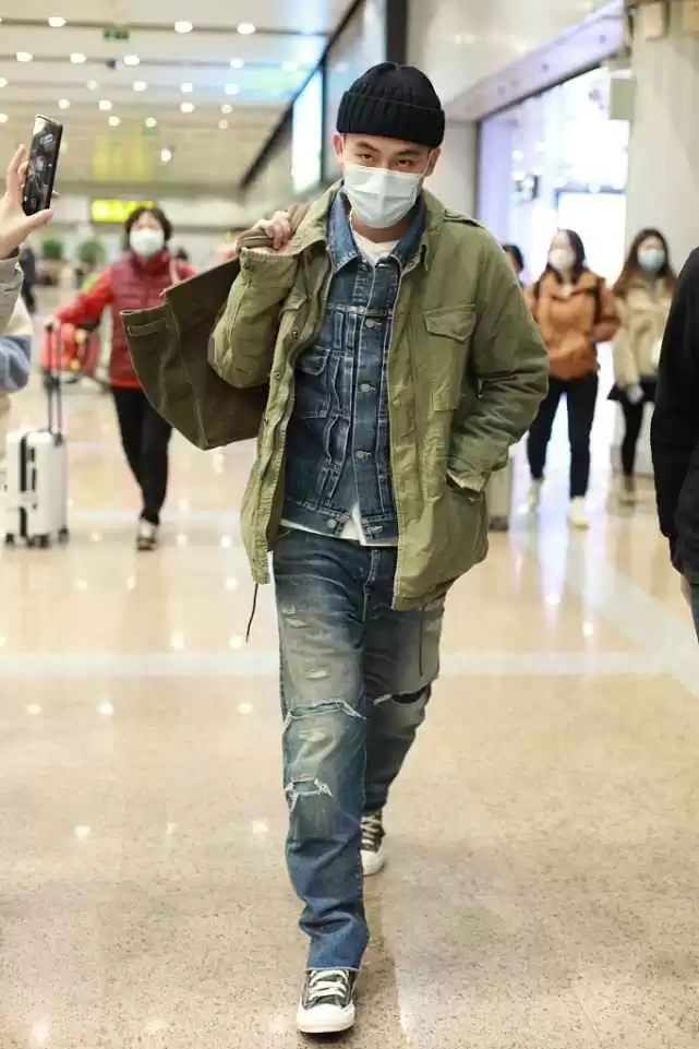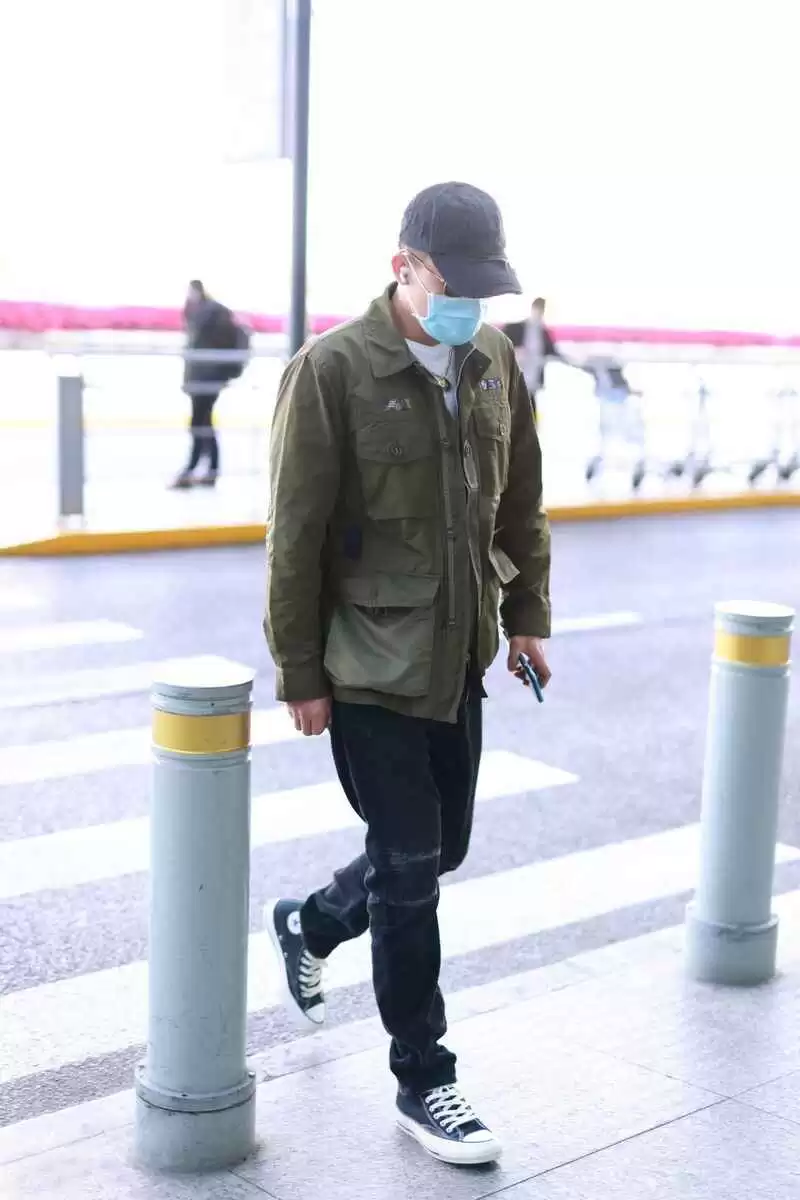 军绿色工装风外套不仅颜色有力量感,精致款式也是一大亮点。看得出欧豪对私服搭配很讲究款式选择,工装风外套实用的大贴袋很受欢迎,打造出的造型特别抢眼。