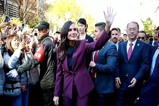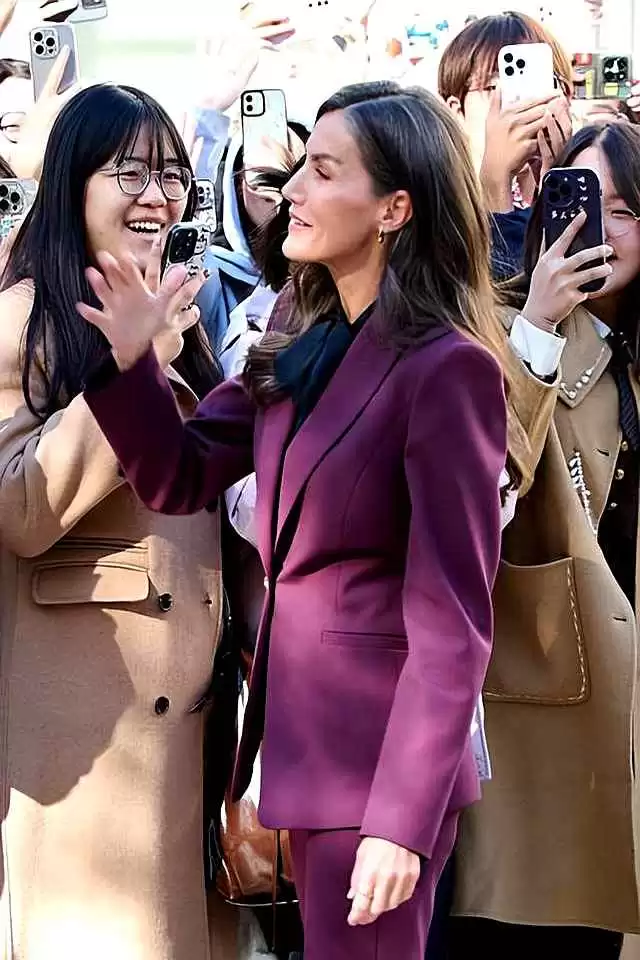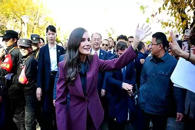 西班牙王后北外之行太抢眼!紫色套装吸睛无数,学生狂赞