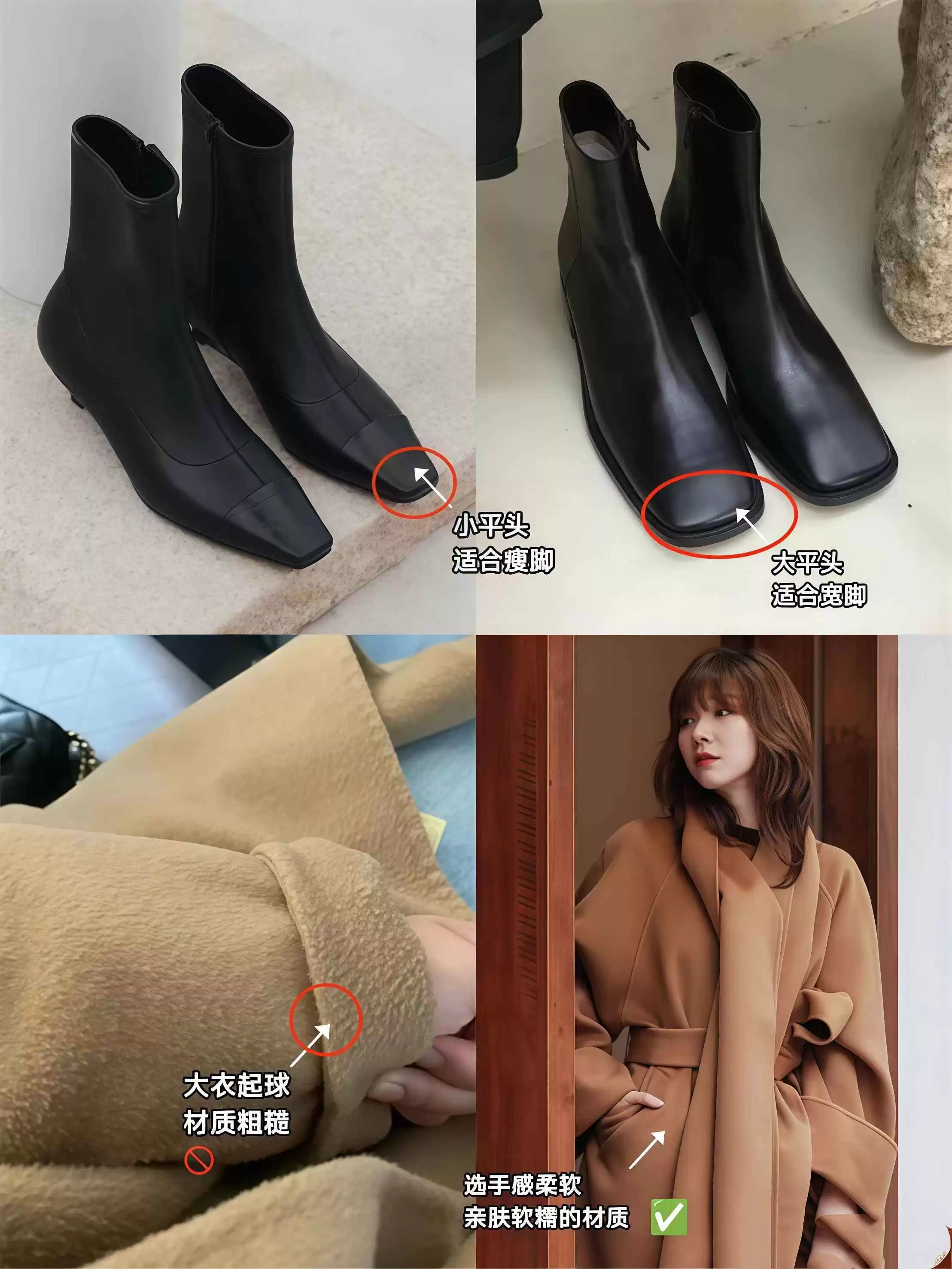 挑平头靴时,很多人会忽略鞋头的实际宽度,其实不同宽度效果差很远。如果你的脚比较瘦、脚背不高,最好避开那种鞋头过宽、显得笨重的“大方头”设计。