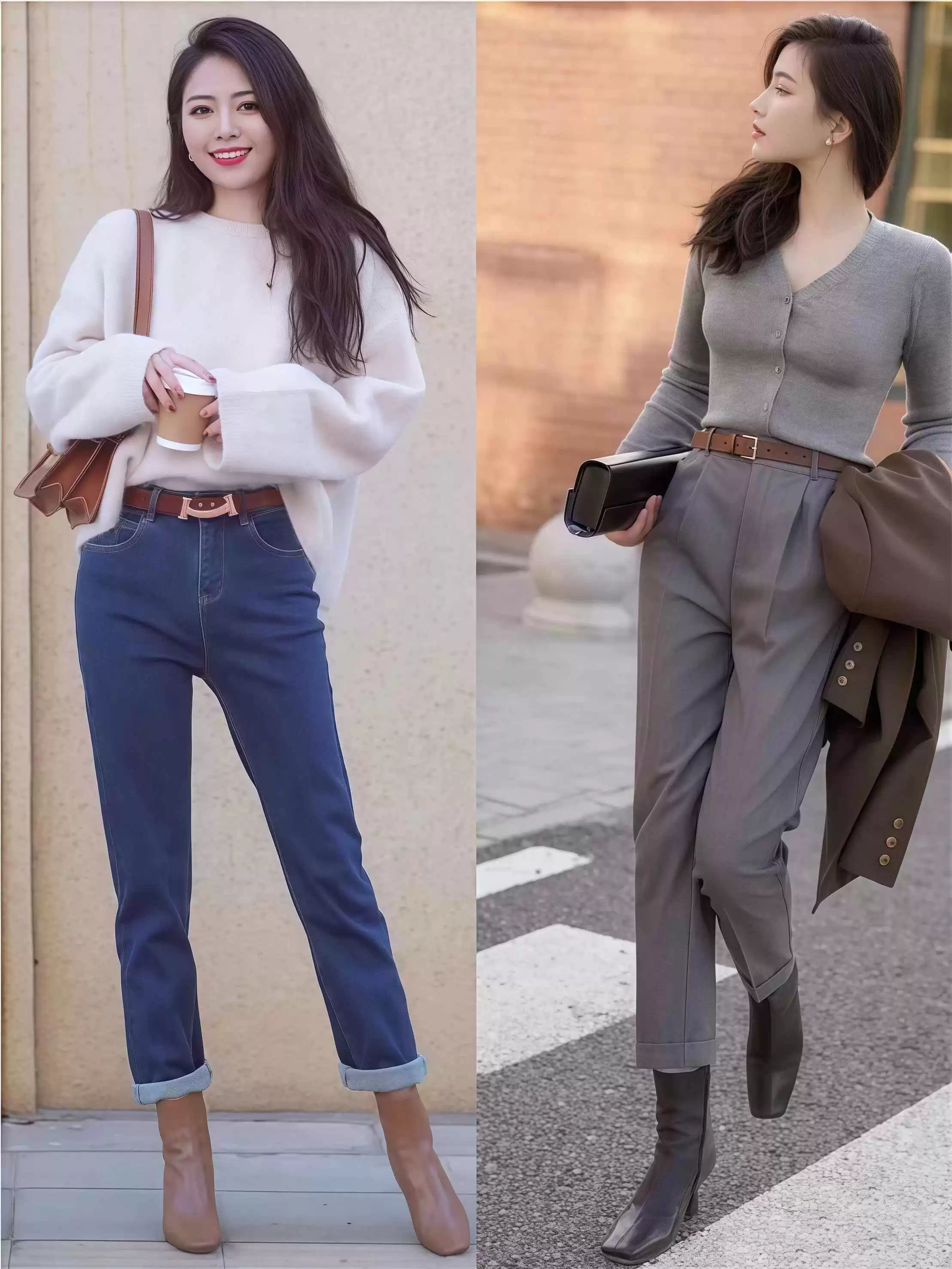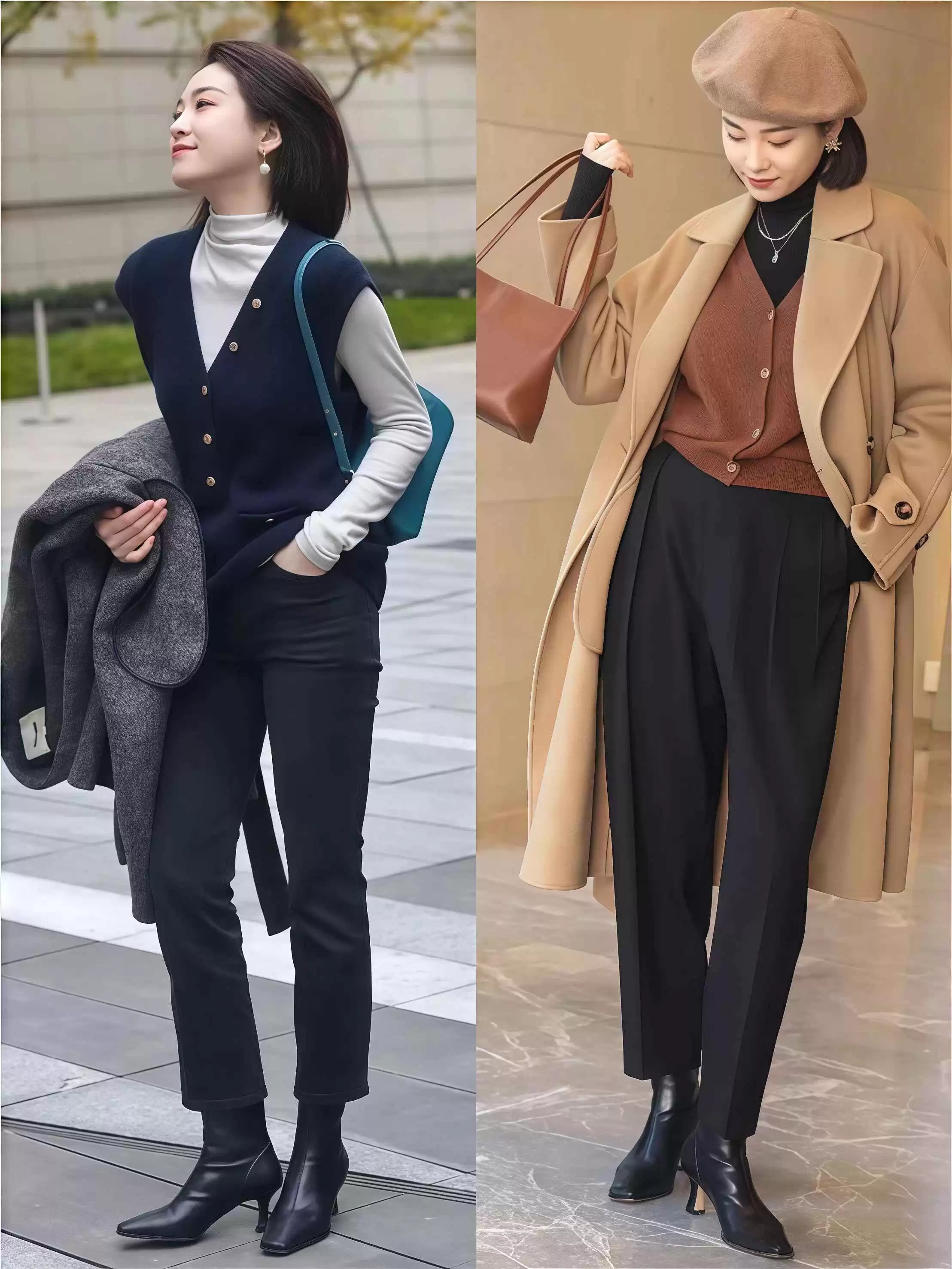 这种款式不仅保暖,还能通过纵向线条修饰腿型,显得腿又长又直。