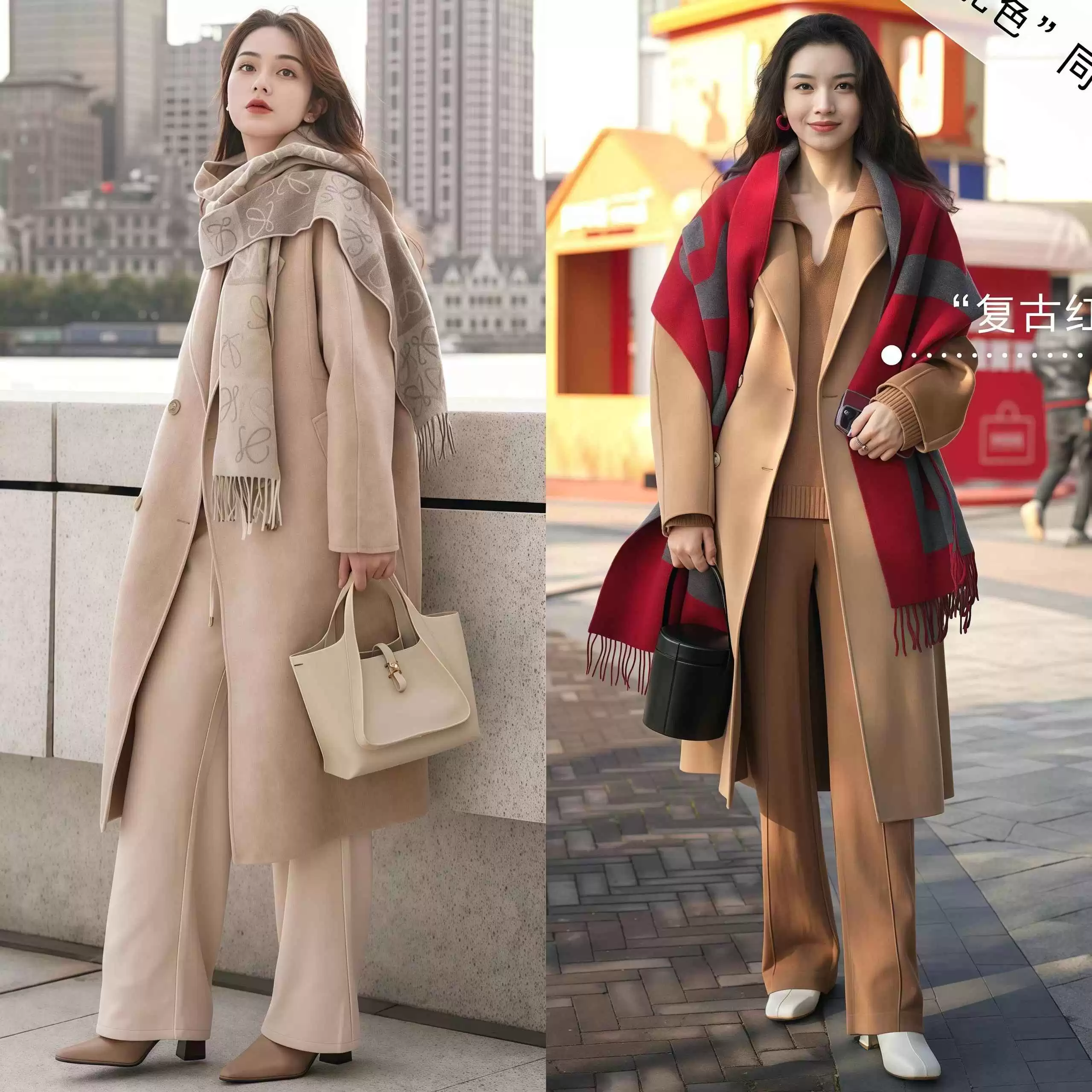 细节B:围巾是冬季氛围感利器