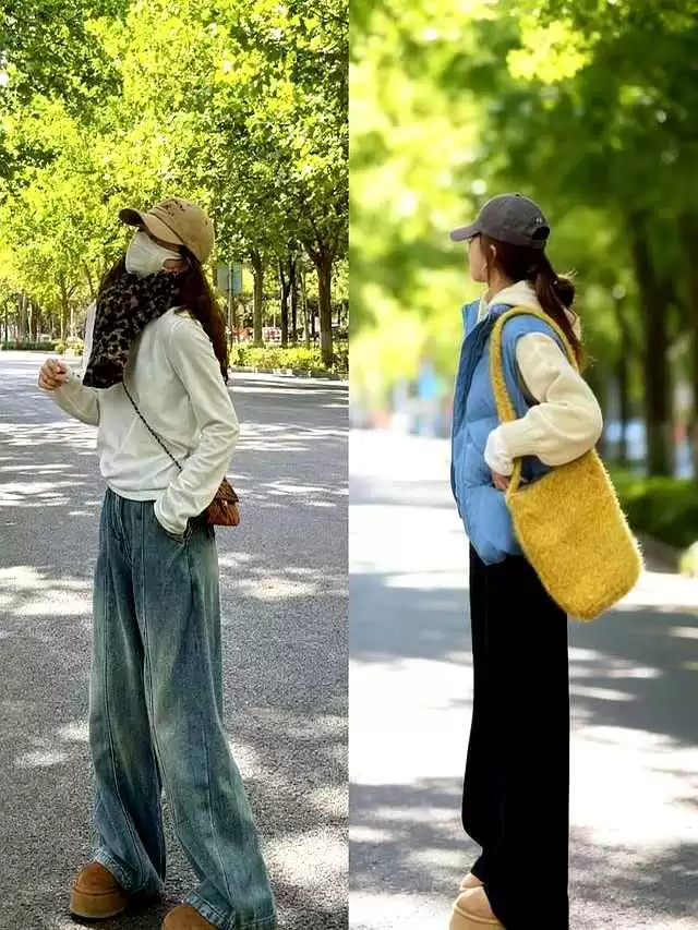 阔腿裤绝对是秋冬搭配的神器,百搭又显高。试试深棕色灯芯绒阔腿裤配短款亮色羽绒服,保暖的同时还能优化身材比例。或者用西装面料的阔腿裤搭亮色毛衣,办公室穿也超合适。更心机的是,裤子和鞋子选同色系,能最大化拉长腿部线条。比如深棕裤配驼色靴子,或黑裤配黑靴,简单易学效果棒。