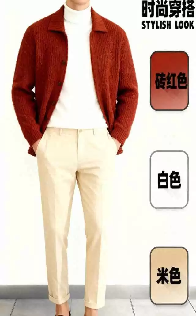 比如,选一件砖红色针织开衫,加点羊毛材质,既亲肤又显暖意。