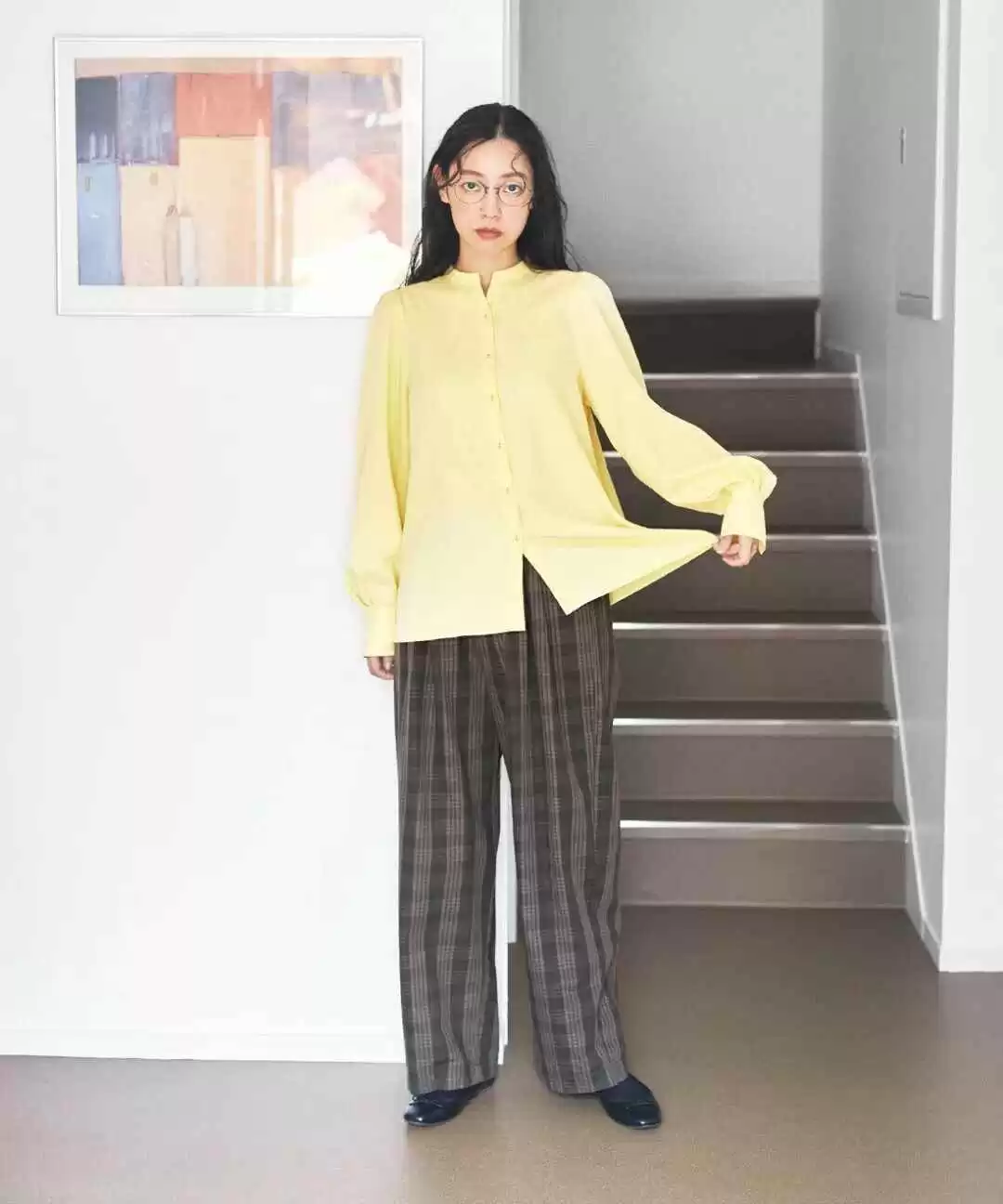 明亮的黄色衬衫,就像把秋日森林的阳光穿在身上,搭配格纹长裤,张弛有度的造型展现搭配技巧。