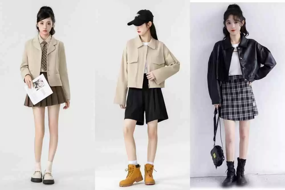 还有外套,别再选长到屁股以下的“oversize”了!短款外套才是显高神器——尤其是腰线高的,比如小西装或棒球服短款,配条高腰牛仔裤或百褶裙,瞬间把腰线提到胸部以下,视觉上直接“九头身”。