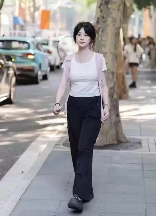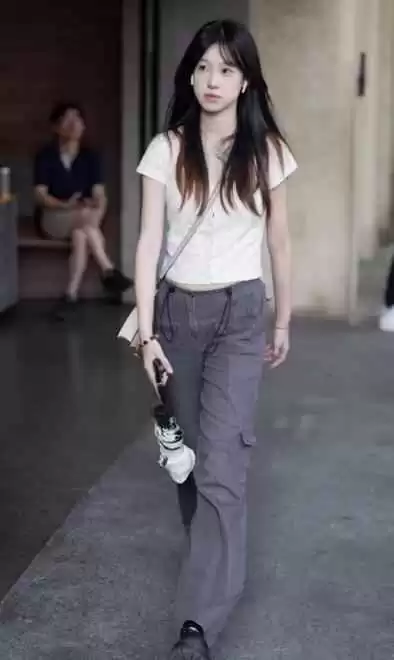 衣服款式简单,妆容清新自然,看起来像是随手搭配的单品,没有过多修饰,但整体感觉就是舒服,给人一种