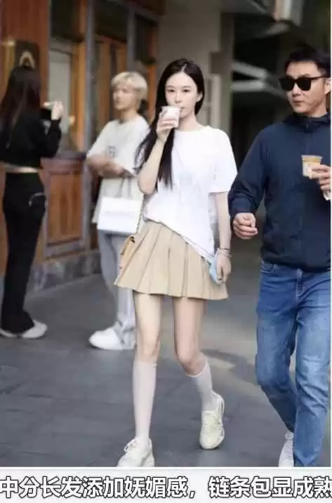 但配上中分长发和链条包,就多了成熟韵味,混搭出清纯又性感的感觉。