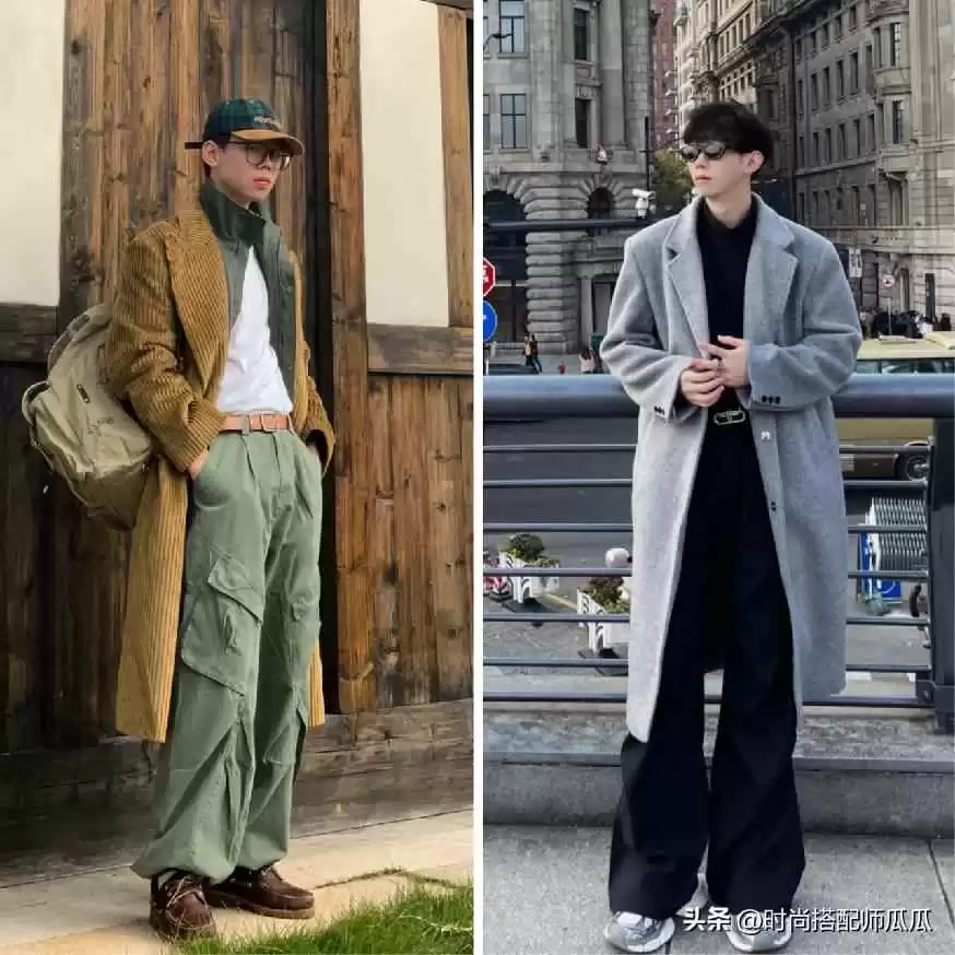 ⑴ 大衣or羽绒服,搭配同色调的西装裤