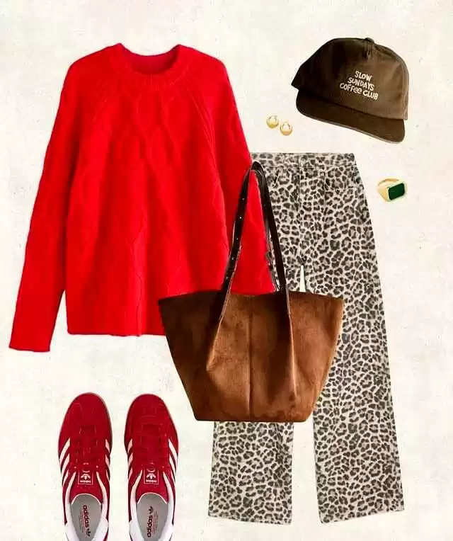 那深浅不一的红色,立刻压住豹纹的浮夸,反而增添复古韵味。