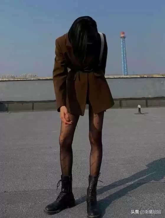 高配版把丝袜当裤子穿,直接配外套。西装干练,加上丝袜的性感,帅酷兼具。一身黑最经典,丝袜微露肤打破沉闷。