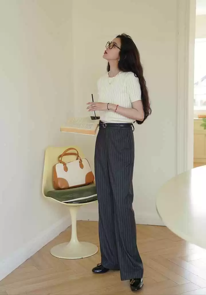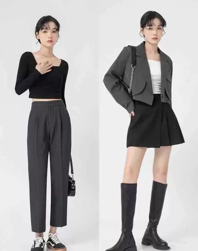 比方说,短款小上衣能压缩上身比例,让身材看起来更匀称;下身搭高腰阔腿裤,不仅显高显腿长,还能把胯部和大腿遮得严严实实,包容性超强。