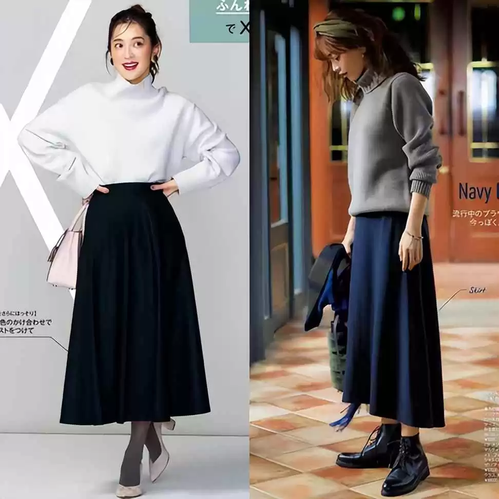 深秋时节,毛衣搭配伞裙是保暖又时尚的完美选择。伞裙采用上窄下宽的设计,能有效修饰腰胯线条,隐藏腿部不足,显瘦效果明显。如果你是梨形身材,强烈推荐试试这种搭配,它能让你看起来更苗条。