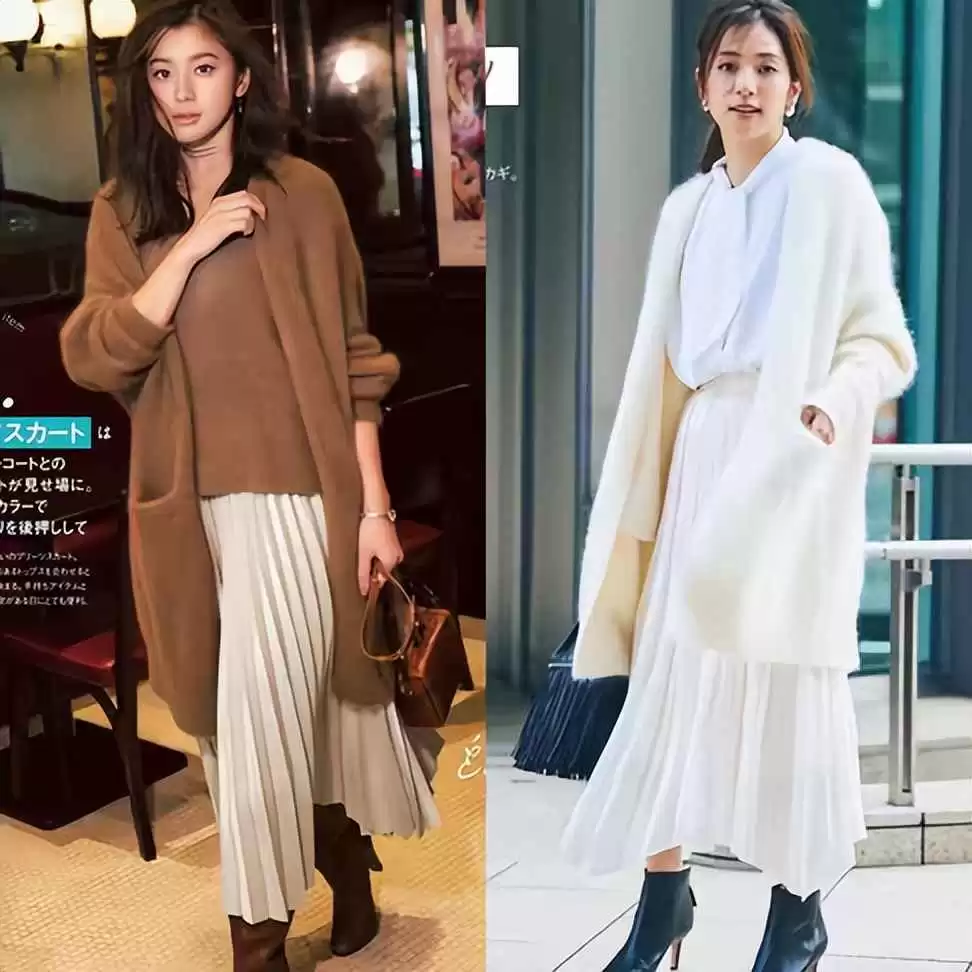 百褶裙的灵动与毛衣的柔软是秋日绝配,褶皱设计随风摆动,自带高级感和活力感,特别适合年轻女生。