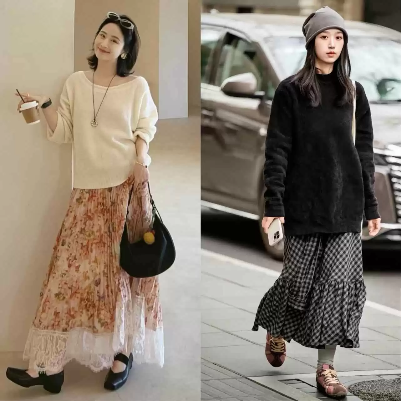 秋天真是穿毛衣配半身裙的最佳季节!毛衣的材质软糯亲肤,不仅保暖效果好,还能巧妙遮肉,无论你是梨形还是苹果型身材,都能轻松修饰。半身裙自带优雅气质,裙摆随风摆动,显得灵动又女人味十足。这两者搭配起来,温柔感瞬间提升,日常出门无论是上班、约会还是休闲逛街,都显得时尚又省心~