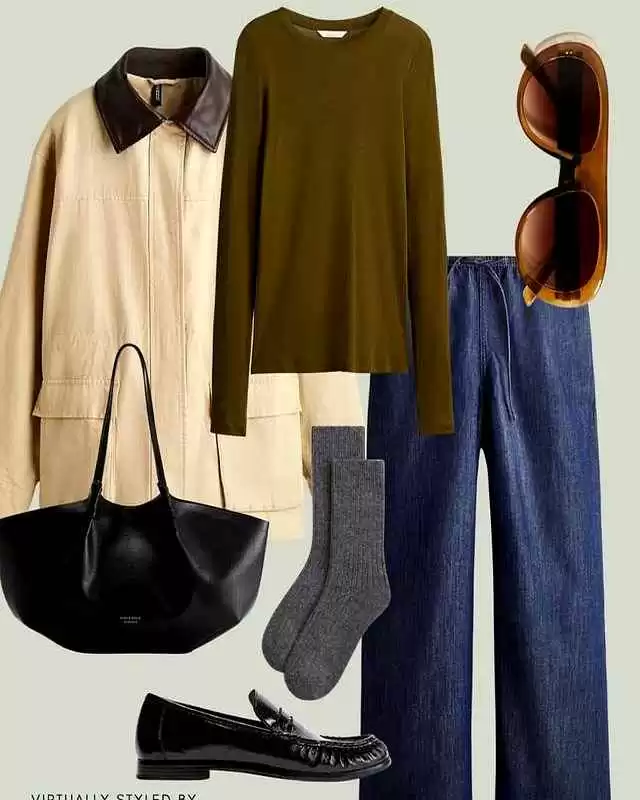 回到那9件基础款的搭配逻辑。为啥选羊毛大衣?因为它的H型剪裁最不挑身材,梨形或苹果形都能穿出挺拔感。而且好材质的羊毛大衣,穿个三五年都没问题。巴恩风外套听起来专业,其实就是工装夹克,耐磨又实用。它厉害的地方在于,配毛衣就是休闲风,配衬衫就能通勤,这种 versatility 才是基础款的精髓。