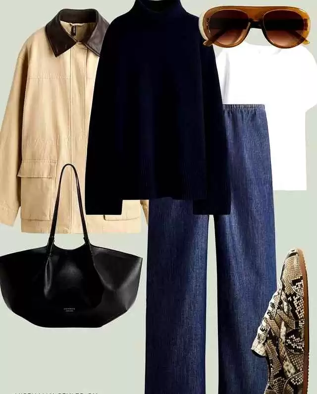 回到那9件基础款的搭配逻辑。为啥选羊毛大衣?因为H型剪裁最不挑人,梨形或苹果身材都能穿出挺拔感。而且料子好的大衣,穿五年都不过时。工装外套更神,配毛衣是休闲风,搭衬衫就能通勤,这种 versatility 才是基础款的灵魂。