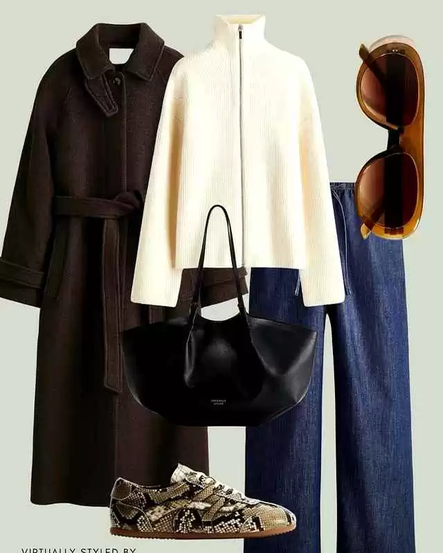 解读:用质感大衣搭配日常毛衣和牛仔裤,这就是“普通穿出高级感”的秘诀。看似简单,每件单品都闪闪发光。