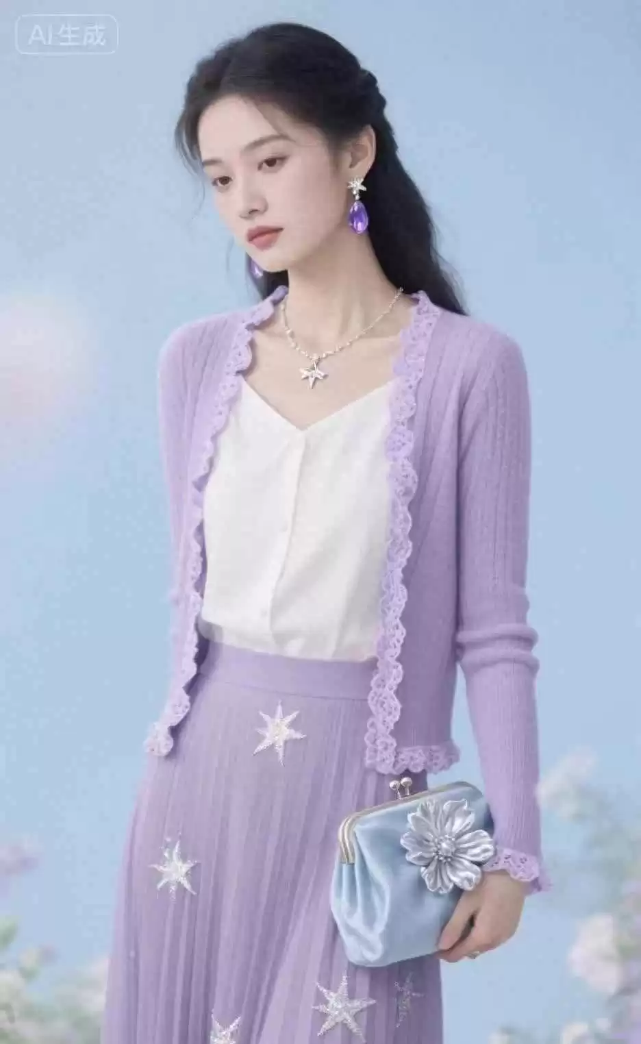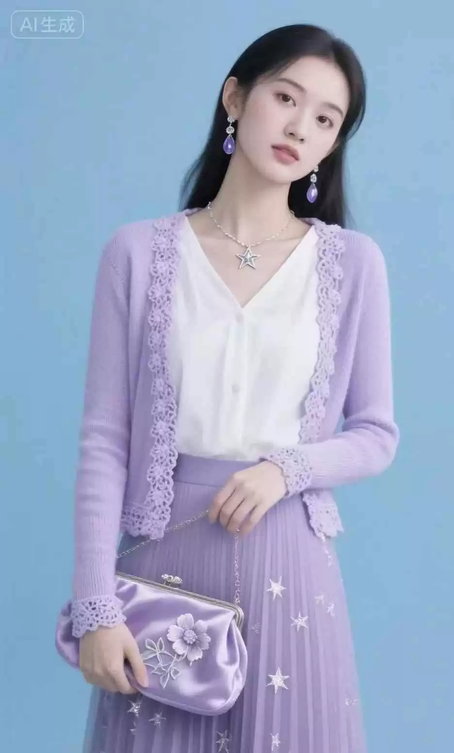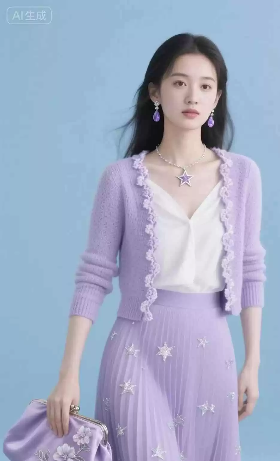 紫色配白色,简单大气,素雅耐看,整体效果高级,而且很衬肤色。白色能让紫色更醒目,适合各种场合。
